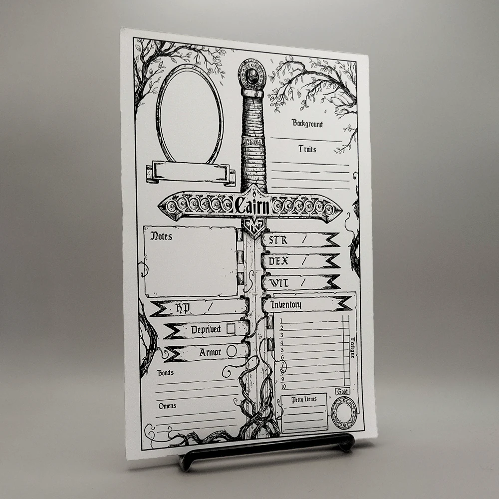 Cairn is the DriveThruRPG Platinum Best Selling adventure game about exploring a dark and mysterious Wood filled with strange folk, hidden treasure, and unspeakable monstrosities. Character generation is quick and random, adventures are tense and reward careful exploration, and combat is frantic and deadly. The first edition rules are freely available here, and should be familiar to any fans of Knave and Into the Odd.